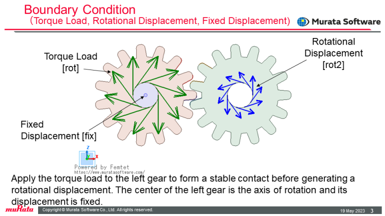 The torque load is set to the left gear and the rotational displacement is set to the right gear.