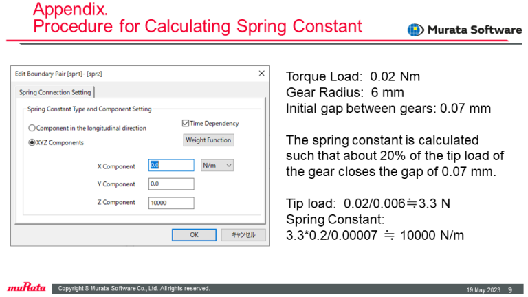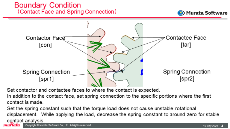 The contact face and spring connection boundaries are set to contact portions of the gears.
