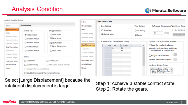 In Step 1, torque is applied to the left gear with the right gear fixed and then the spring constant is gradually reduced to form a stable contact.