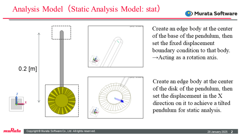 To analyze pendulum oscillation, perform the static analysis of a fully tilted pendulum to obtain the results, and then use the results to perform the import analysis with a transient analysis model.