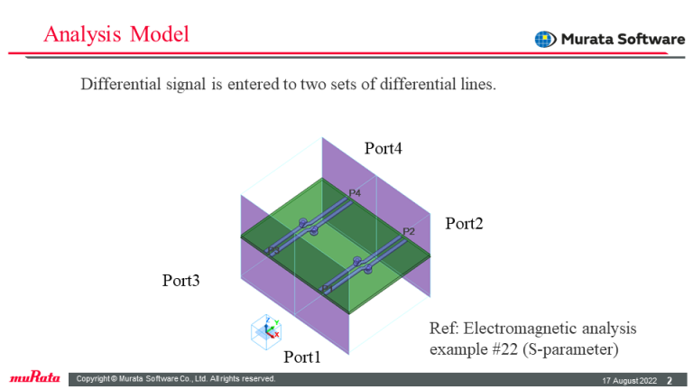 The differential line analysis model is based on electromagnetic wave analysis example 22.