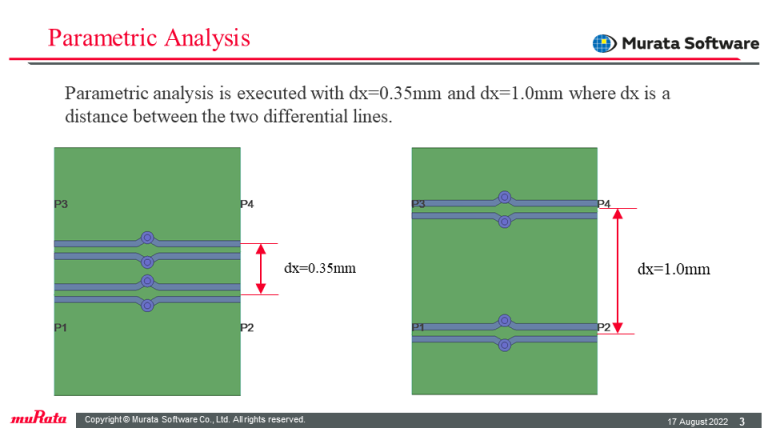 Two sets of differential line analysis models with differential vias are shown in Figure 1.