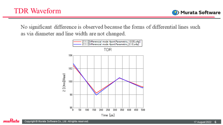 Because the shape of the differential track itself (Via diameter, track width, etc.) was not changed in this case,