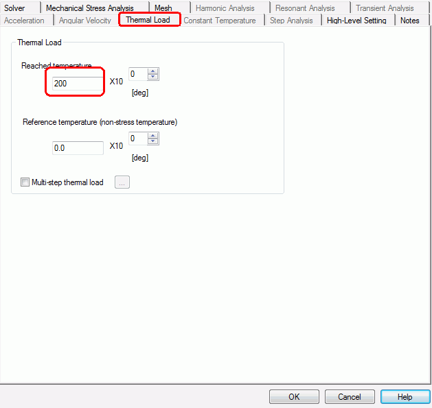 The reference temperature is set on the thermal load tab.
