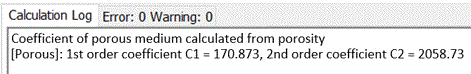 If [Calculate from Porosity] is selected in the setting, the coefficient of porous is obtained by the Ergun equation.