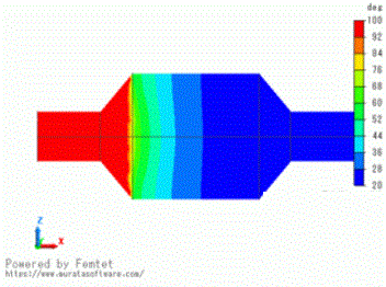The results at 0.1 [s], 5 [s], and 20 [s] are shown below. The maximum and minimum values of the contour diagram are 100 [deg] and 20 [deg], respectively.