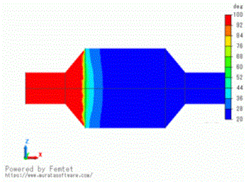 The temperature at the inlet rises to 100 [deg] over the time as short as 0.1 [s].