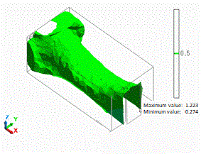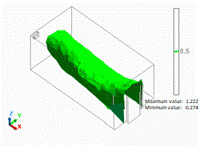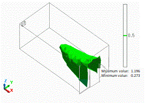 The isosurface at 0.5 represents the boundary of old air and new air.