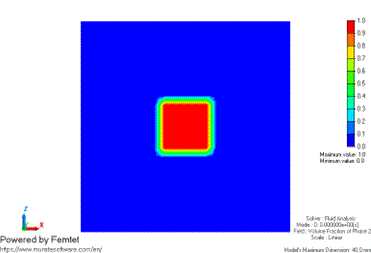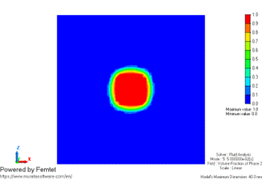 The change of droplet from a rectangle to a circle by surface tension is solved with VOF method.