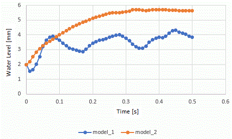 The water levels of the two models are acquired by [VOF CaptureBoundary Macro.xlsm] and shown in the graph below.