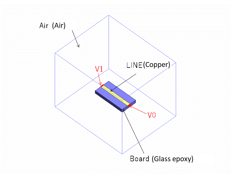 Inside the box, create a solid body of a substrate (Board) and a sheet body of a copper wiring (LINE).