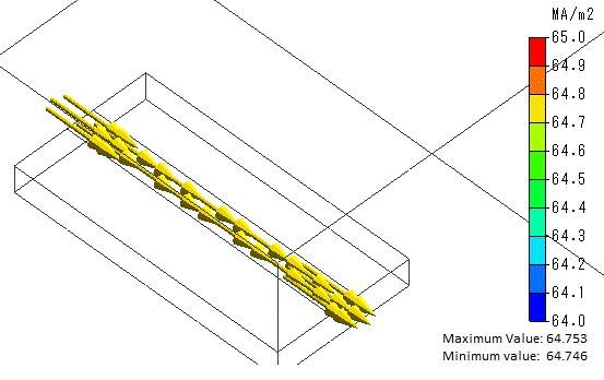 The vectors of the current density are shown below. The difference in electric potential causes a current to flow through the wiring.