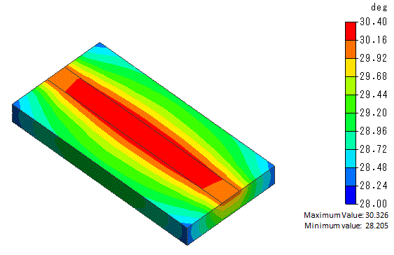For easy viewing of the temperature distributions of the substrate and the wiring, the ambient air field is hidden by right-clicking the air body and selecting [Hide body field].
