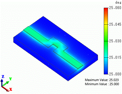 Home / Examples / Coupled Analysis / Electric-Thermal Analysis [Coulomb/Watt] / Example 2: Heating of Conductive Strip (Transient Analysis)