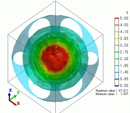 The isosurface contour of the electric potential is shown below.