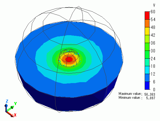 The figure below shows the gradation contour of the electric potential on the Z=0 plane.