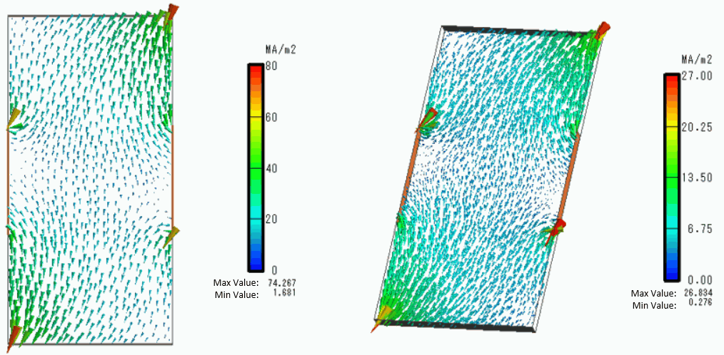 The vectors of the current density are shown below.