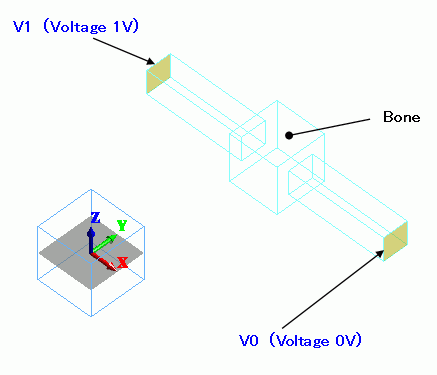 Electrodes are set on the I/O faces of the current with the electric wall boundary condition.