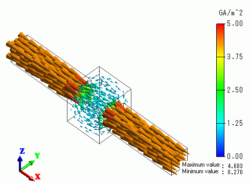 The vectors of the current density are shown below.