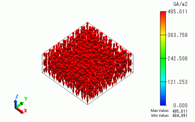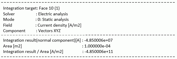 The integral of the heat flux is calculated by Integration on Results Window. Calculation result of the current density on the top face of the body is shown below.