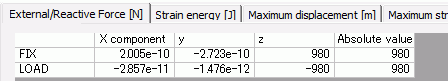 The reactive force at FIX is a total of 980 [N] in +Z direction.