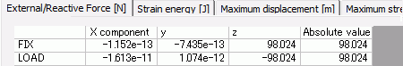 The reactive force at FIX is a total of 98 [N] in +Z direction.