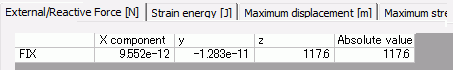 The reactive force at FIX is 117.6[N] in +Z direction.