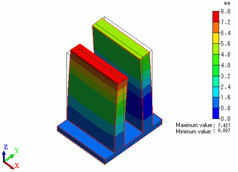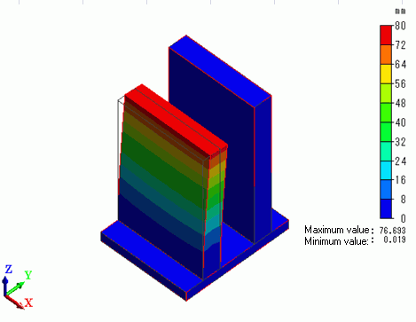 The contour diagram shows the magnitude of displacement.