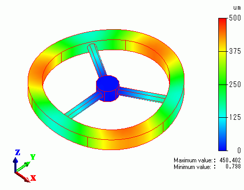 The Z-direction displacement is shown below by contour. The contour diagram shows the magnitude of displacement.