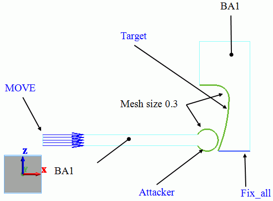 The mesh size of contact surfaces is set to 0.3 [mm], which is smaller than general mesh size of 0.9 [mm].