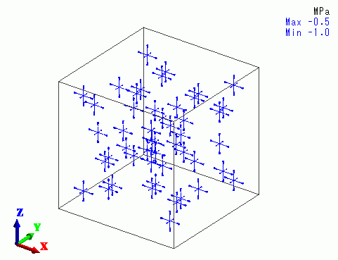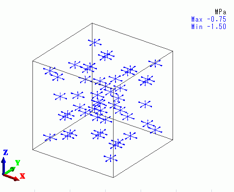 At these three temperatures, the components 1, 2, and 3 of Young's modulus are set to 1 [Pa], respectively. At other temperatures, the components are set to 2 [Pa].