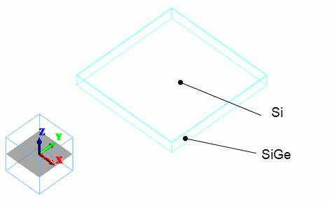 The SiGe layer is a 0.1 um-thick solid body. The Si layer is a 0.01 um-thick solid body.