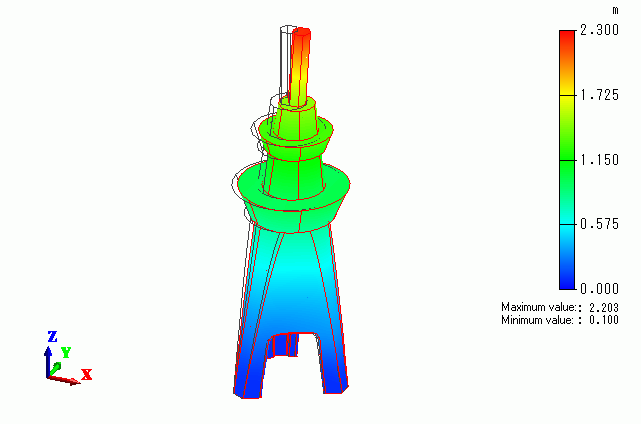 The forced X displacement is applied on the bottom of the tower. The applied displacement is set to 0.1 [m] on the bottom as boundary condition.