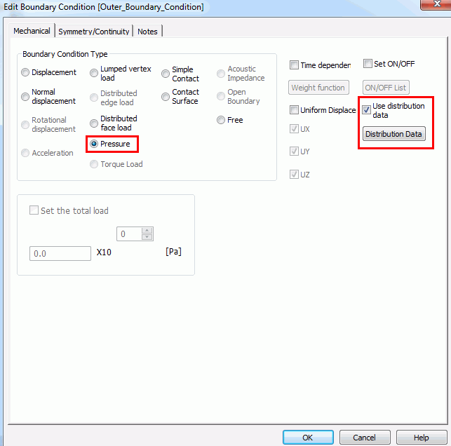 For the Pressure, set [Distribution Data] of the [Edit Boundary Condition].