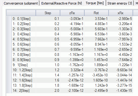 Since OFF (No) is set on the step 2, the constrain of rotational displacement is removed from the first substep in the step 2 onward.