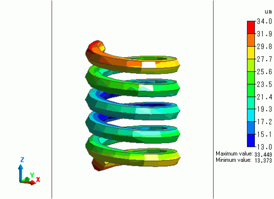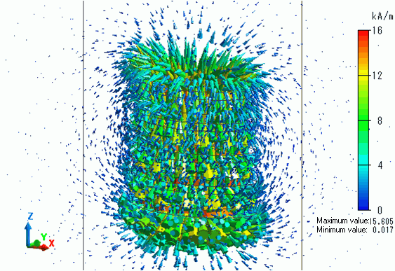 The vectors of the magnetic field, the temperature distribution by the heating, and the deformation are solved.