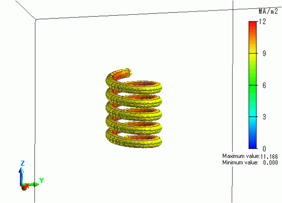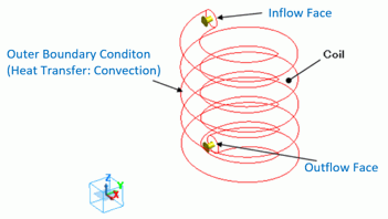 "Natural convection (automatic coefficient calculation)" is set for the outer boundary condition (in the thermal analysis, the outer boundary condition is surrounding the coil).
