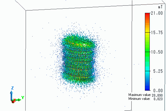 The vectors of the magnetic field and the temperature distribution by the heating are viewed.