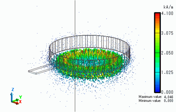 The vectors of the magnetic field and the temperature distribution by the heating are viewed.