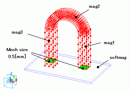 Mesh size is set at 0.5 [mm] for both ends of the magnet as the magnetic fields change drastically at both ends.