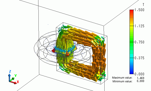 Waveform: Constant Current: 2 [A] Turns: 100 [Turns] Direction: Loop Coil/Magnetic Field Direction Magnetic Field Vector: X=0, Y=0, Z=1 |