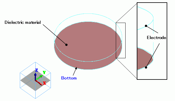 Electrodes are set on the top and bottom faces of the dielectric disc.