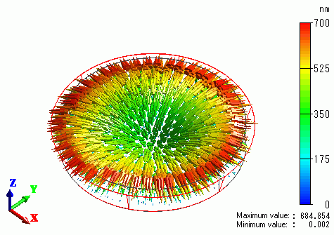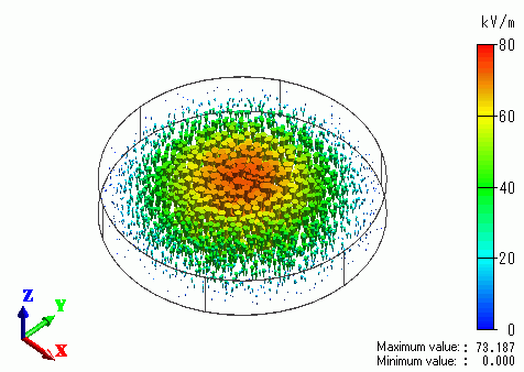 The vectors of the electric fields resulting from the electromagnetic analysis [Hertz] are shown below.