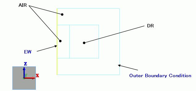 The model is basically a cross section of the example 11's model. DR is a sheet body, a section of dielectric resonator. It is surrounded with rectangular AIR.