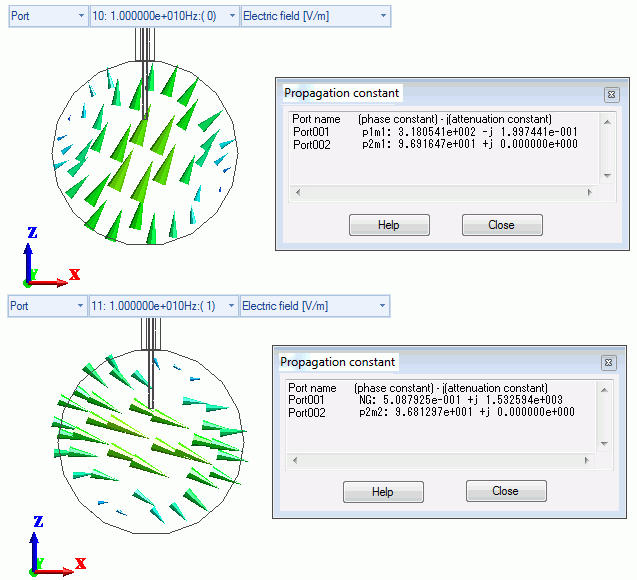 Note that "p" is for port and "m" is for mode in p2m1. The second "propagation constant" dialog box shows the following: