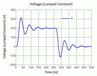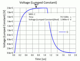 From this equation, the time taken to charge 99% of the capacitor (Vc=0.99V0) is about 690 [ns]. As shown in the analysis result (Fig. 2), the time taken to charge 99% of the capacitor