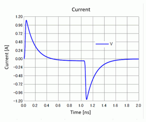 The current flowing into the model from the port is treated as positive. Therefore the current in the discharge process (after 1.0 [ns]) is negative.