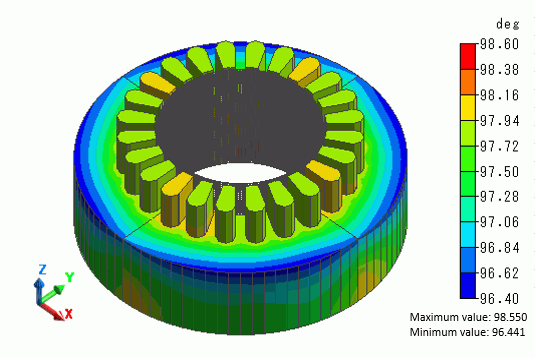 Temperature and torque characteristics of IPM motor (Interior Permanent Magnet Motor) are analyzed when the electricity is applied.