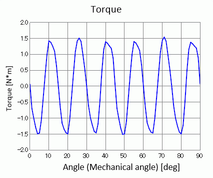 The waveform of cogging torque is shown as follows. It is output to [Torque [N*m]] of the result table.