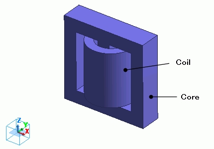 The model is defined by the core (Core) and the loop coil (Coil) are defined.